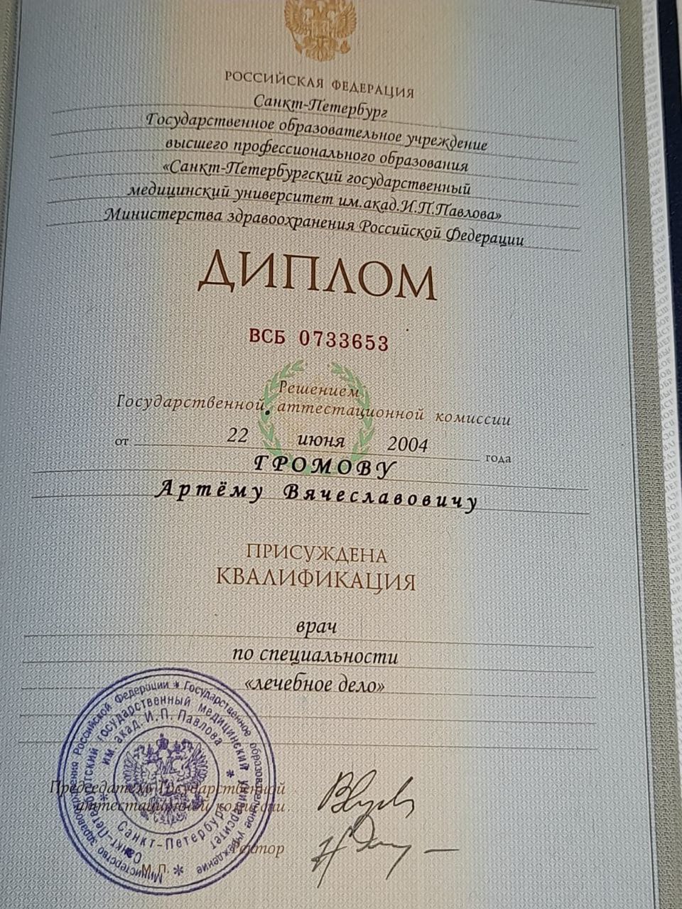 - СпбГМУ им. акад. И.П. Павлова, 2010, Врач 2й категории