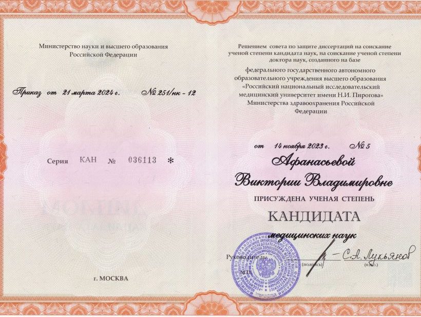 2023г. — Кандидат медицинских наук